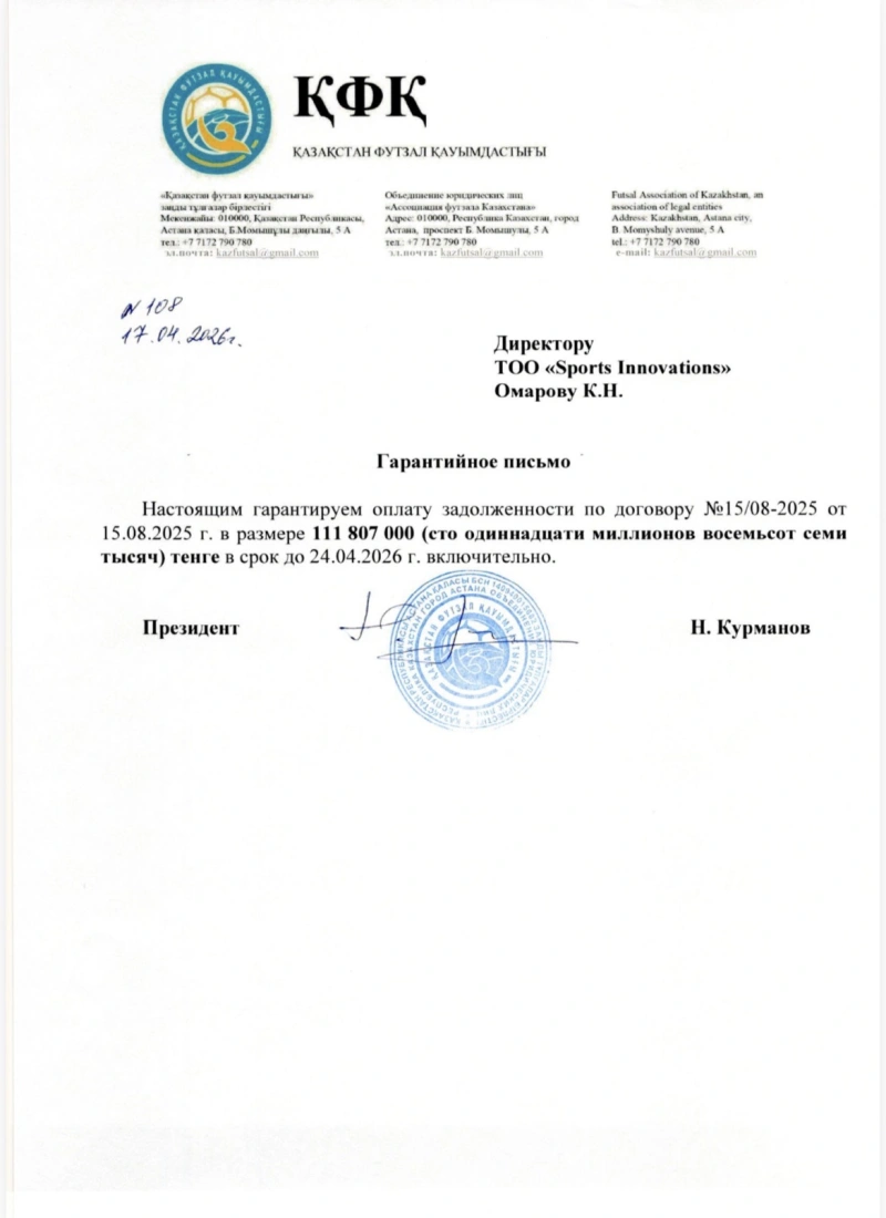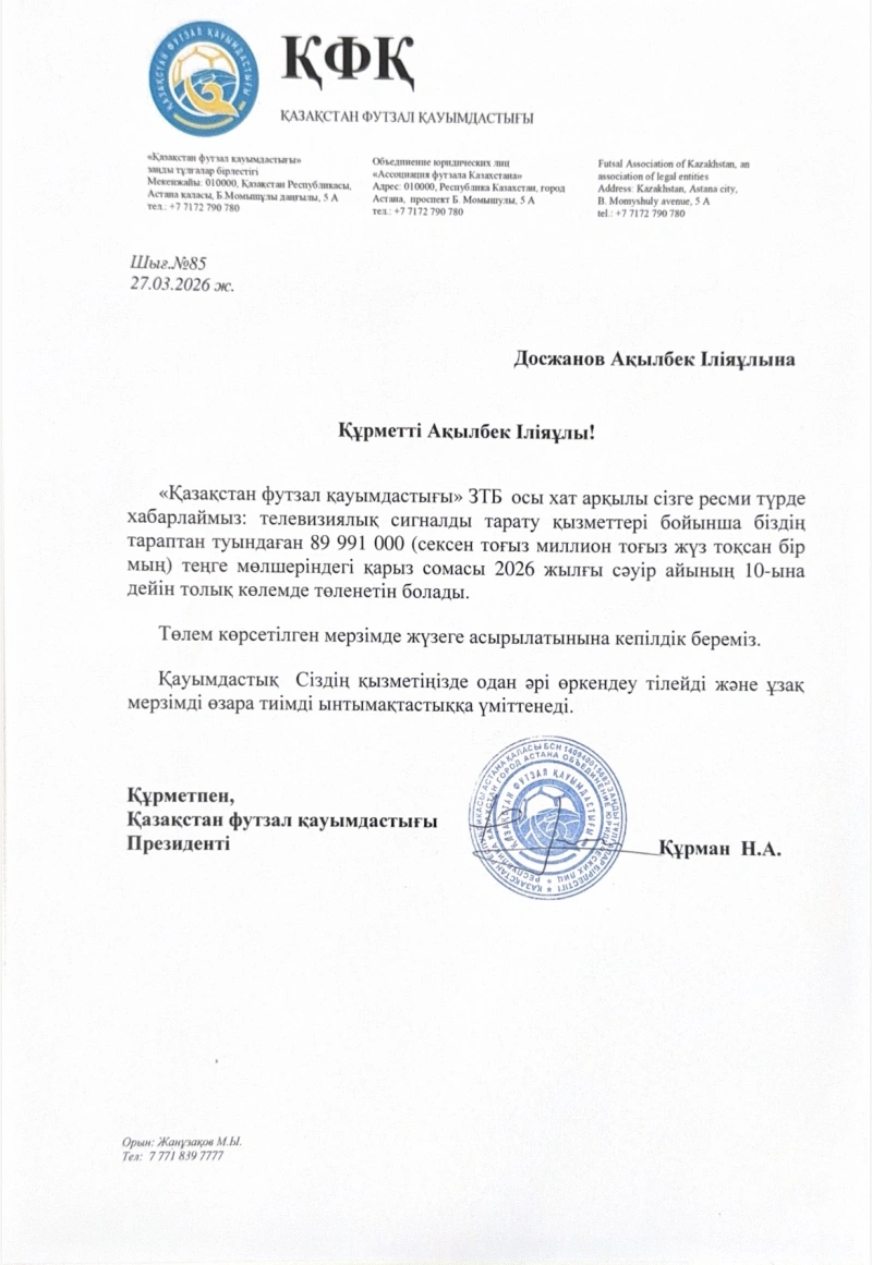 В Казахстане может произойти срыв трансляций матчей по футзалу. Телевещатель заявил о крупной задолженности со стороны Федерации футбола Казахстана, которая, по его словам, превышает 100 миллионов тенге.
