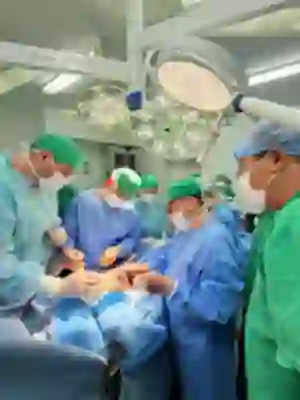 Операция А.Сызғанов атындағы ҰҒХО және Түркістан облыстық клиникалық ауруханасының бірлескен командасымен өткізілді.Хирургтар Б. Баймаханов, М. Досханов, Ж. Оспан, анестезиологтар Т. Қуандыков, В. Мутагиров.